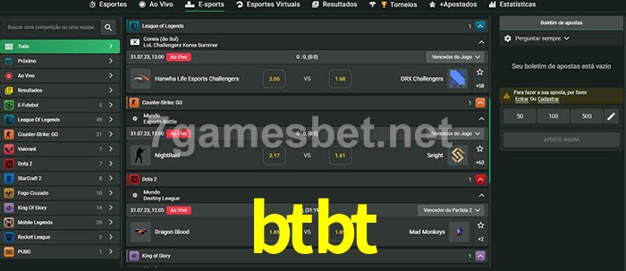 A aposta btbt oferece aos jogadores a experiência mais conveniente de apostas em eSports!